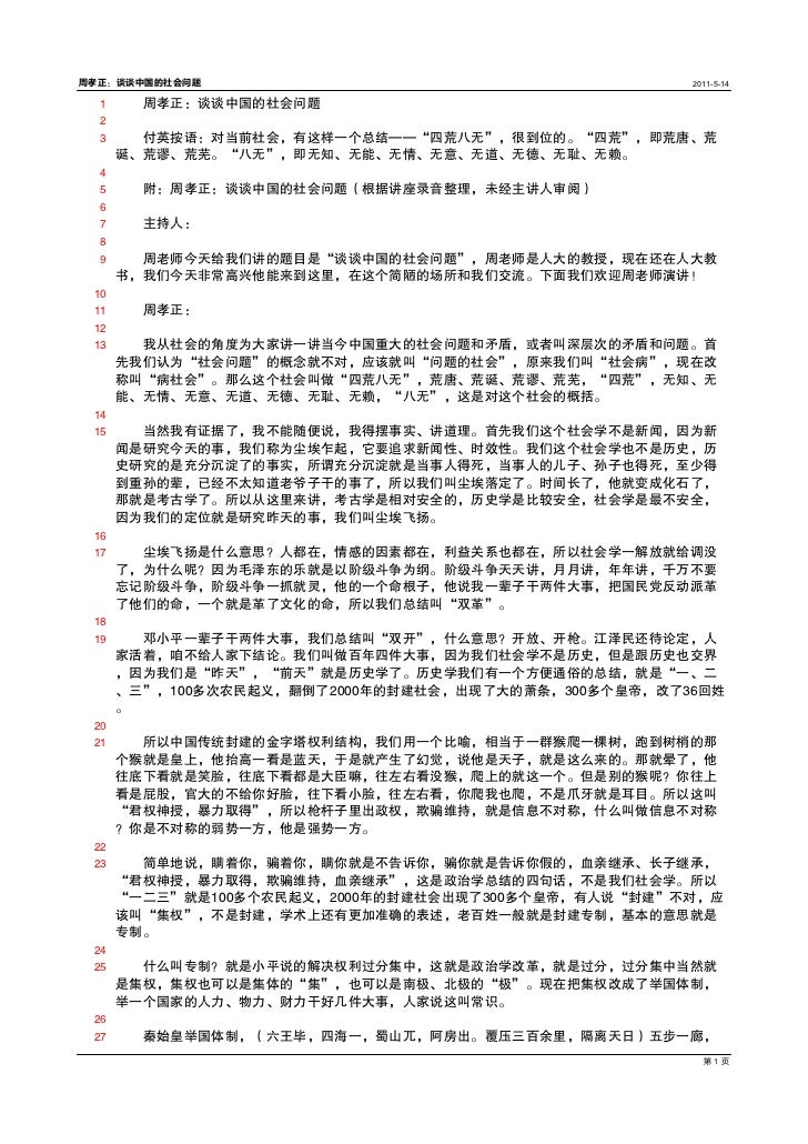 周孝正 谈谈中国的社会问题